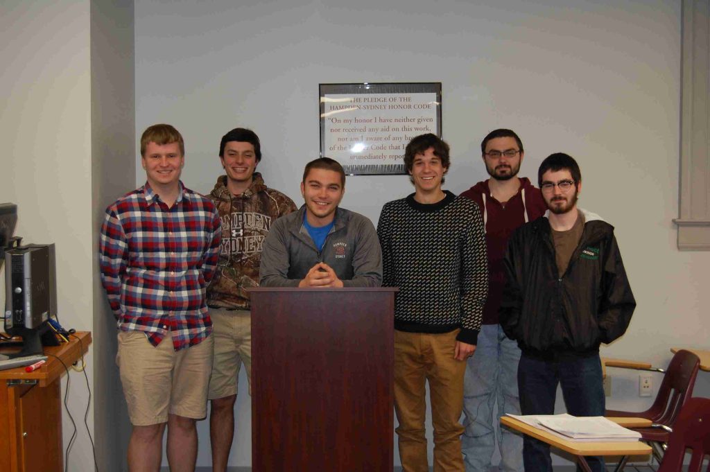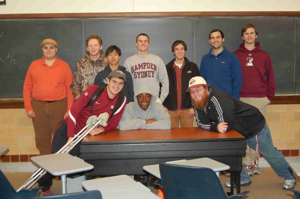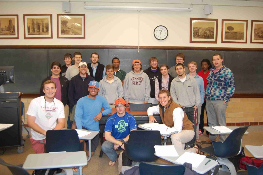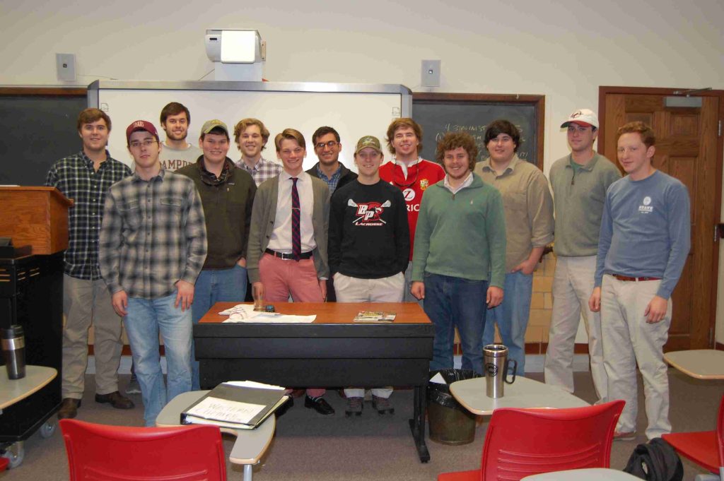 WCul 103 ‘Western Culture 1800-present.’ (Left to right): Christian Clifton, Will Lacey, Mitch ‘7 December what?’ Owens, Nathan Knox, Alex ‘Cone of Silence’ Trivette, Atticus O’Brien, Will ‘The Card Dispenser’ Brantley, Andrew Gass, Chris Hawk, Baker Allen, Joe Bean, Bo Turney, and Caleb Swiney.
