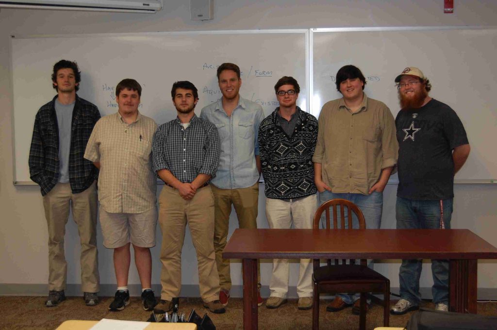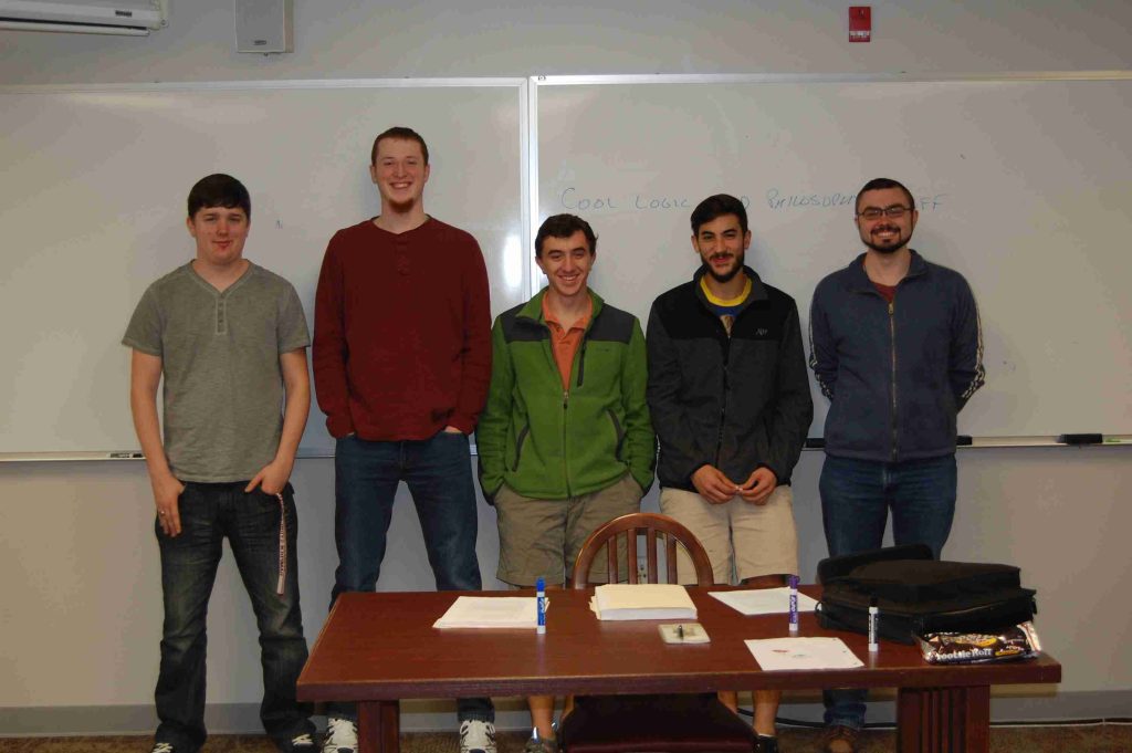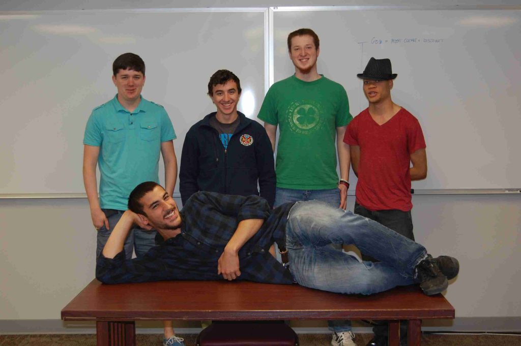 Phil 305 ‘Contemporary Philosophy.’ (Left to right): Bryon ‘I ain’t free’ Hines, Daniel Hopkins, Dylan Schlaak, Ryan Rivas, and Benjamin Hartnett.
